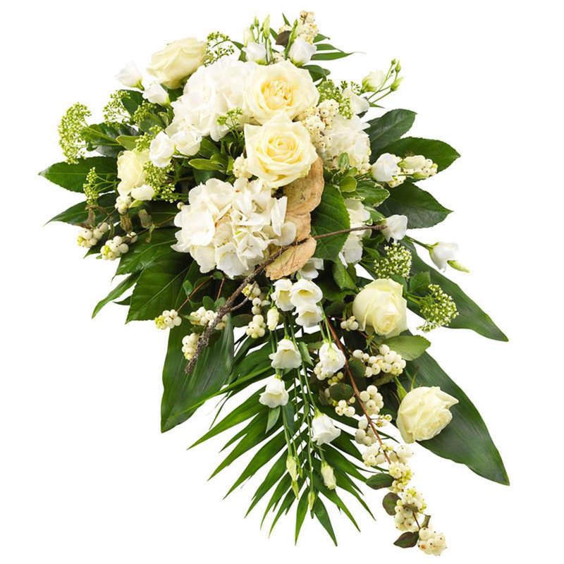 Róża kremowa + Hortensja biała + Eustoma biała + Liście + Dodatki