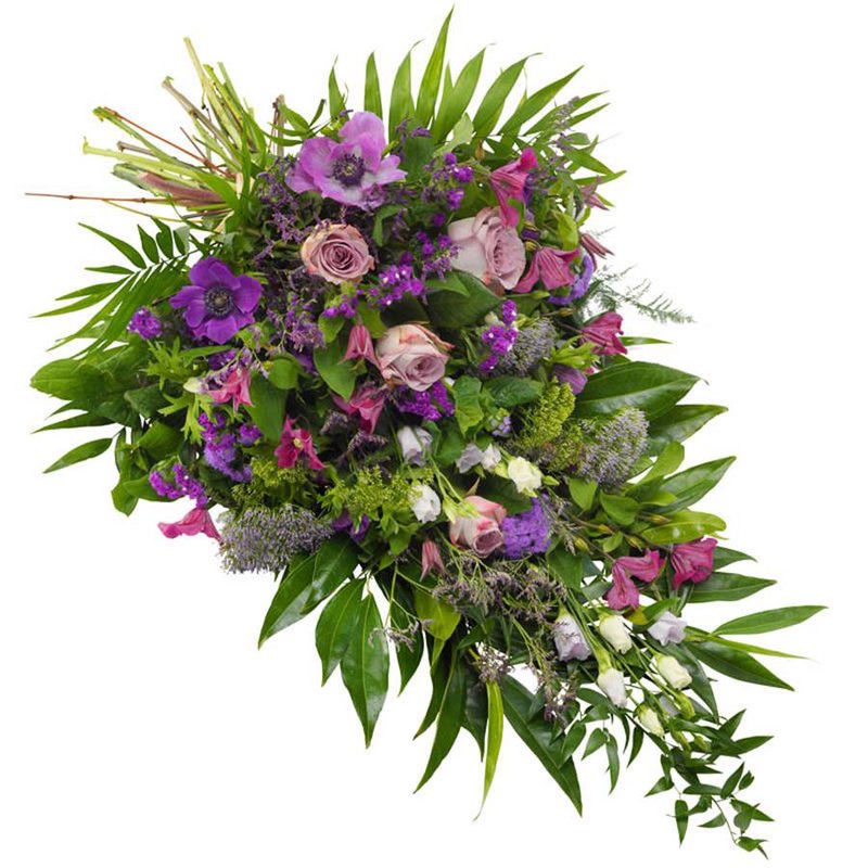 Lilia biała + Goździk fioletowy + Liście + Dodatki