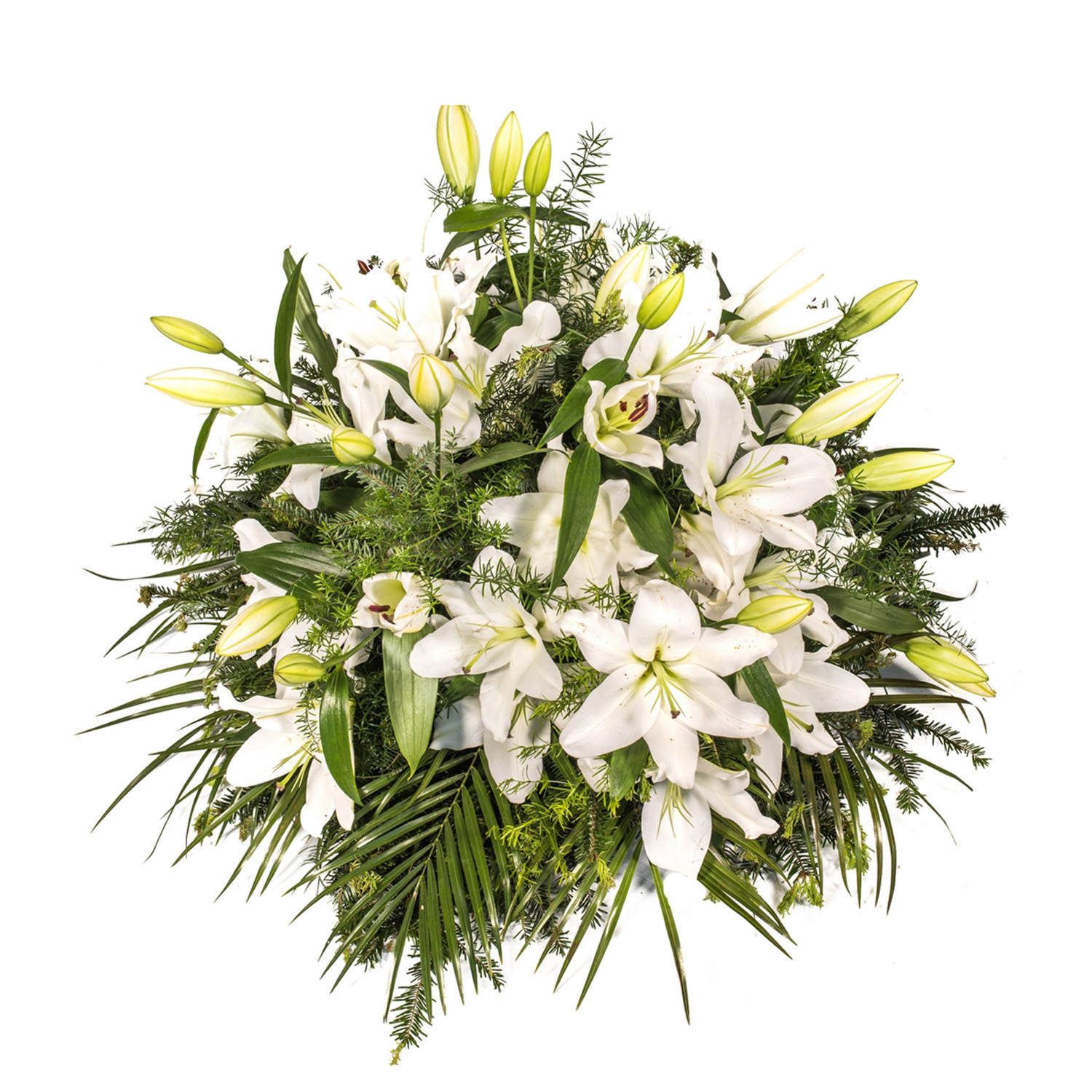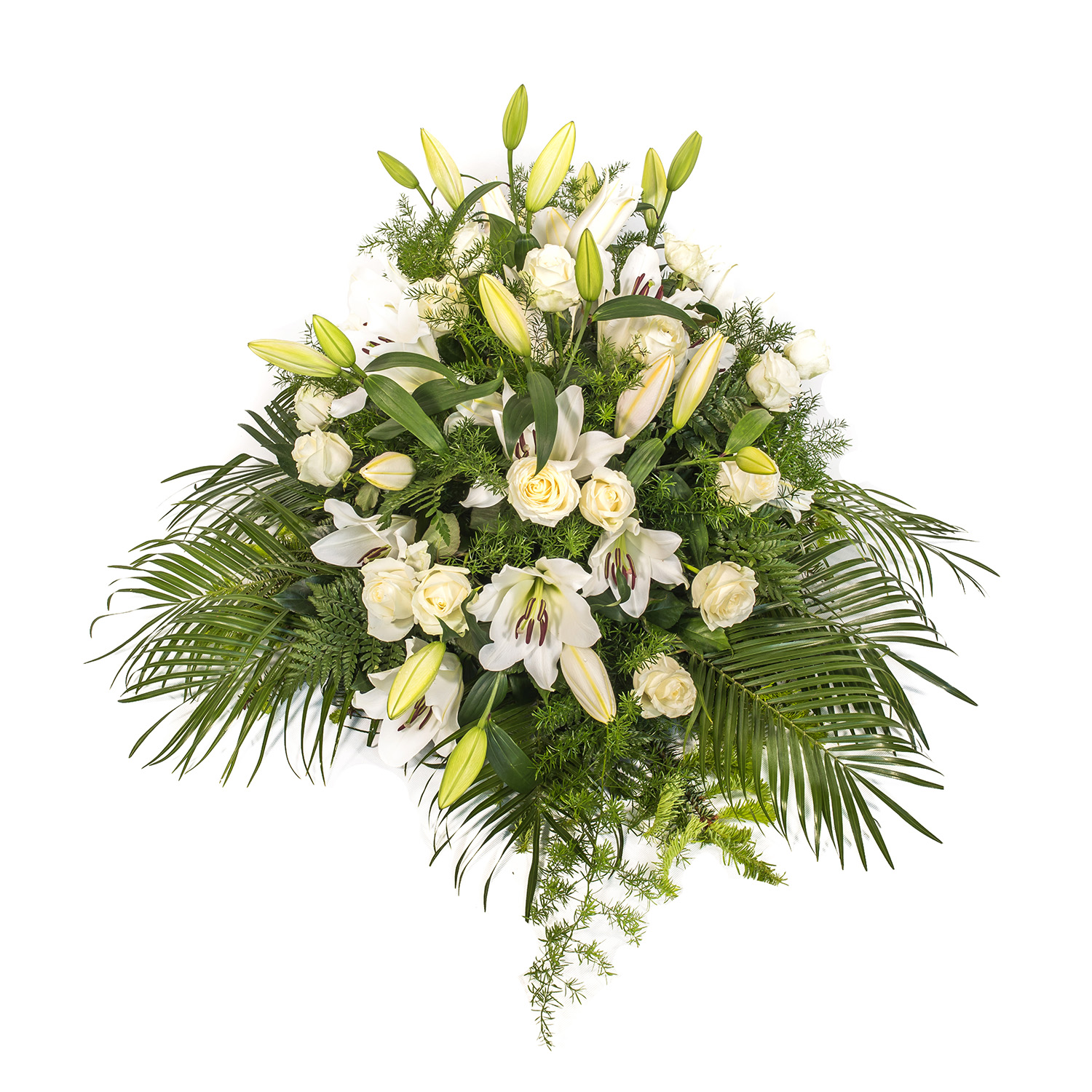 Lilia biała + Róża kremowa + Asparagus + Liście + Jodła