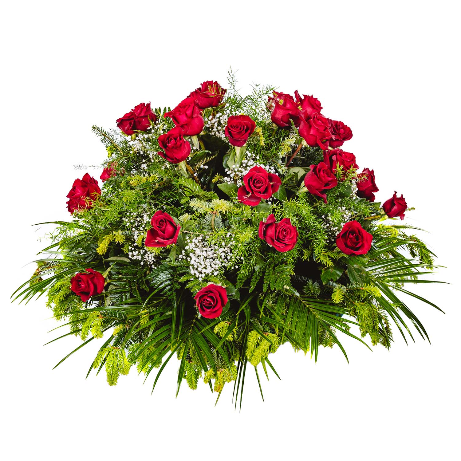 Róża bordowa + Gipsówka + Asparagus + Liście + Jodła