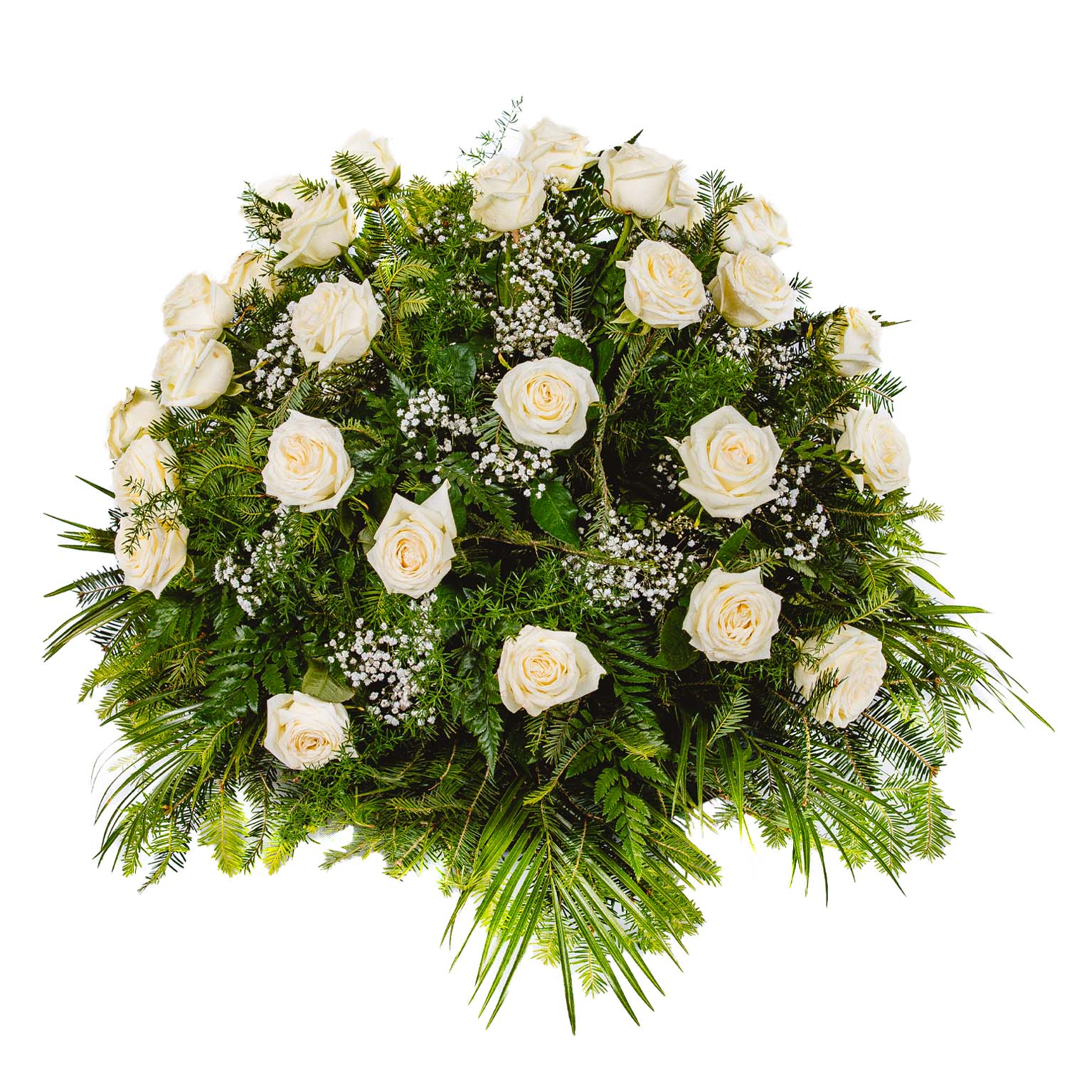 Róża kremowa + Gipsówka + Asparagus + Liście + Jodła