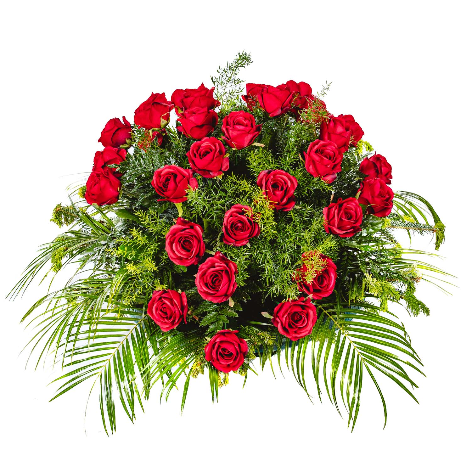 Sztuczna róża czerwona + Asparagus + Liście + Jodła